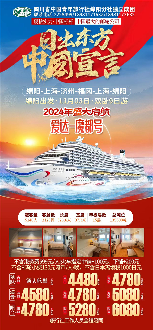 綿陽(yáng)中旅假日旅行社于2024年10月9日在市工會(huì )大廈成功舉行“愛(ài)達·魔都號豪華郵輪9日游”旅游線(xiàn)路推薦會(huì )?,F場(chǎng)主持人向到場(chǎng)的嘉賓們詳細的介紹了濟州、福岡等地的風(fēng)土人民、美食、美景以及出游的相關(guān)注意事項等內容,受到了嘉賓們的熱烈歡迎和關(guān)注。服務(wù)熱線(xiàn):0816-2228499/2238477 。